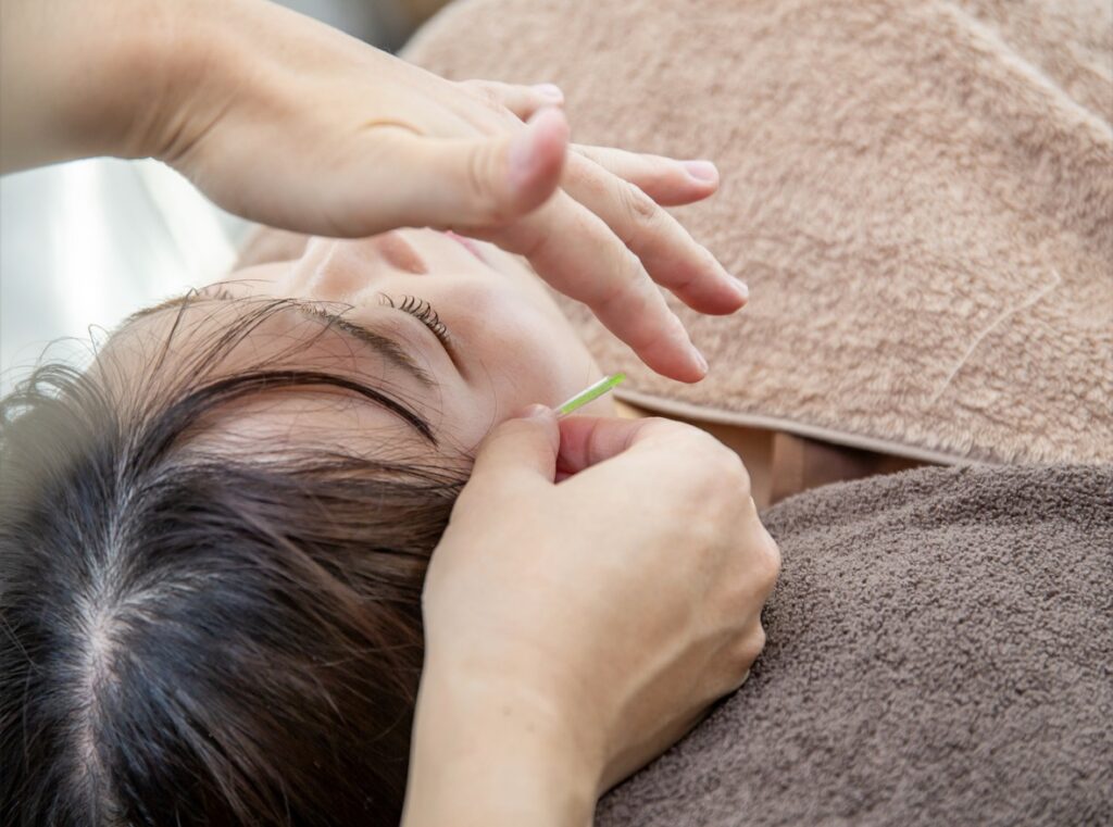 また、顔のたるみに対しては「合谷(ごうこく)」や「迎香(げいこう)」などのツボが用いられ、顔面の血行を改善します。美容鍼と呼ばれる施術では、顔に直接細い鍼を打つことで、表情筋を刺激し、コラーゲンの生成を促進する効果も期待できます。